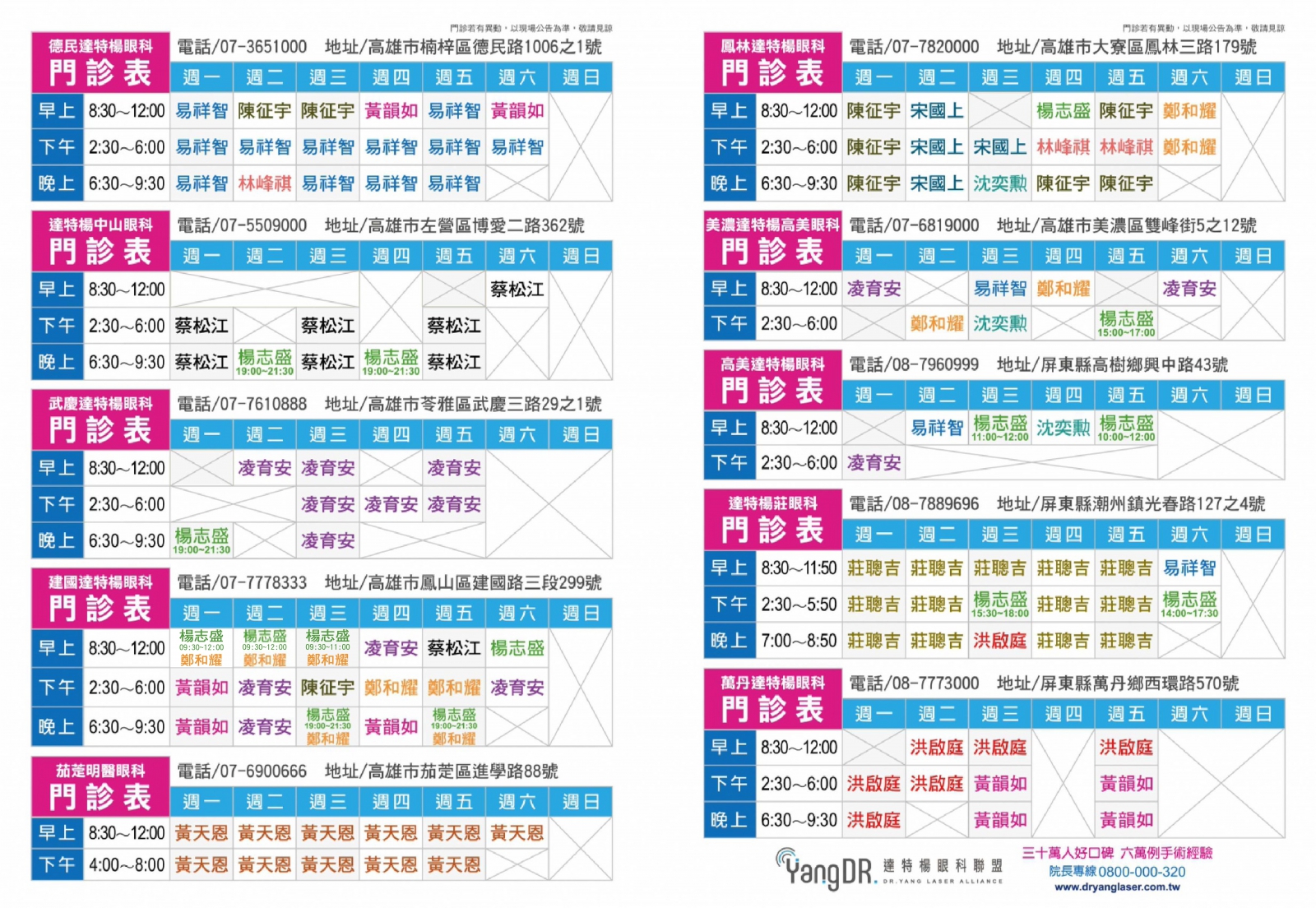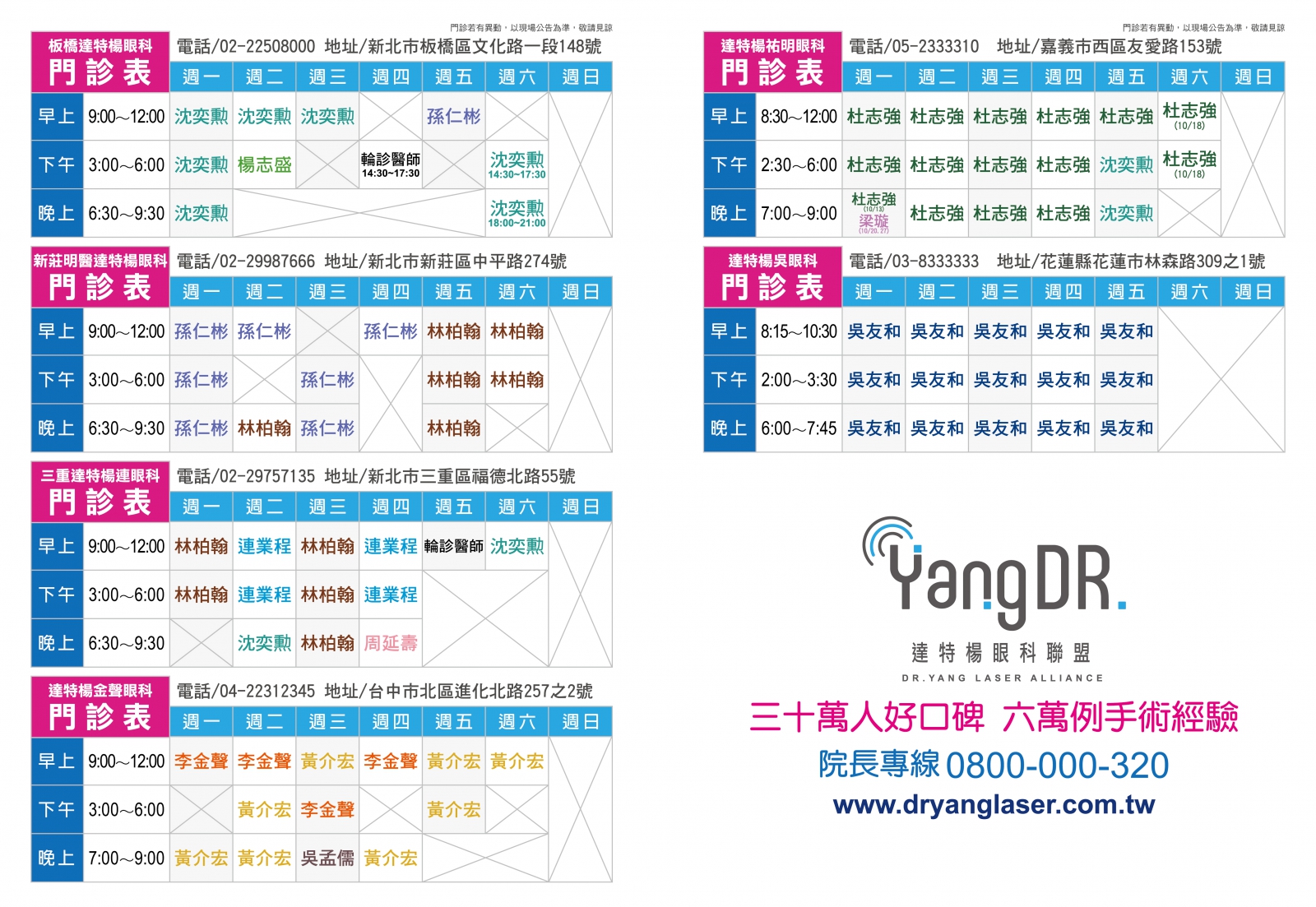 Home最新消息院所公告 2025-12-01 院所公告達特楊12月份一覽門診表 分享到Facebook 分享到LINE 複製此頁連結 ※ 門診情形若有異動,以現場公告為主,敬請見諒 ※ 2025-12-12 👀眼球狂晃不受控也能雷射近視⁉️19歲腦傷女大生視力逆襲衝到1.5!✨ 2025-10-20 🚨 眼睛危險警報!假冒名醫販售「奈米眼藥水」詐騙橫行! BACK